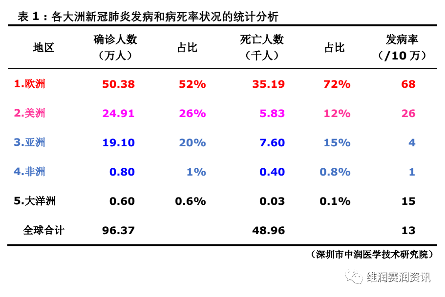 表3给出了目前欧洲5大区域新冠肺炎的发病和死亡情况最新统计。从中可见: